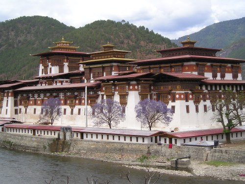 The recently restored Pungthang Dechen Dzong in Punakha, built as a monastery in 1637 was the capital of Bhutan from the time of nationhood in 1907 until 1955.