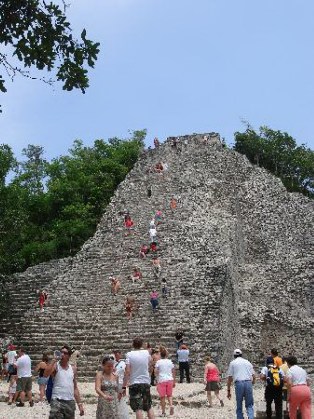 Coba is another of the impressive archeoogical sites you can visit in the Yucatan state of Quintana Roo in Mexico’s Riviera Maya. It is a huge site deep within the jungle and has a maze of roads which served ancient civilizations. Near the site archeologists found a large stone cylinder which they speculate helped to form the road network, called sacbeob. There are two tall pyramids which you can see poking their heads up through the top of the jungle before you arrive, and you can climb to the top of these for excellent views. But the climb is tough in the humid heat, and the descent a bit frightening. Be sure you are up to it before you attempt it. Nohoc Mul, the Great Pyramid, is over 130 feet high. We found it fun and relaxing to rent bicycles and ride along these ancient roadways to see more of the area than we could have on foot. One of the roads is 45 miles long leading to another ancient town Yaxuna. We recommend booking your tour of Coba with AllTourNative guides because you can spend a half-day at Coba followed by fun activities and a delicious meal at an authentic Mayan village of Pac Chen in the jungle.