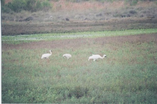 Soon we saw them in the distance: mother, father and baby crane. Whooping Cranes are family-oriented. They like time together and forage for large blue crabs separately from other families.