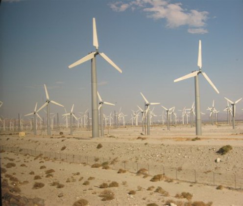 For instance, approaching Palm Springs aboard the Sunset Limited, we pass a forest of giant wind turbines, hundreds and hundreds of them. I’ve known about the benefits of wind power, but I realize now that some visual pollution comes with the package, although there are people who think this sight is beautiful.