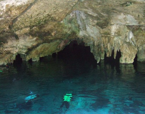 Swim, Snorkel and Dive. Approximately 25% of the Mexican Caribbean is designated as an ecological reserve. Offshore, the great Maya coral reef that extends from Cancun through Riviera Maya to Honduras is second in size only to the Great Barrier Reef in Australia. It is a diving and snorkeling paradise. Collapsed limestone craters create sinkholes, known as cenotes that lead to an extensive system of underground fresh water rivers found throughout theYucatan Peninsula. The Mayans considered cenotes to be the sacred entrance to the underworld, inhabited by fantastical monsters and beings. Swimming, snorkeling and diving in them is an extraordinary experience. Yal-Ku is a natural lagoon that empties into the Caribbean. It is a perfect spot for a picnic lunch and long swims around the rock formations rising from its depths. It is not a well-known spot, but worth the visit.