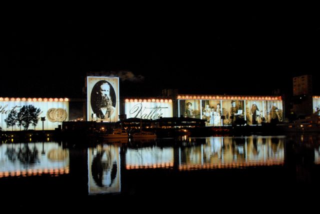 A carry-over treat from Quebec City’s 400th anniversary is the Image Mill where laser-like animated images are projected on the sides of the Bunge grain terminal of 81 silos of 600 meters long. The 40 minute visual performance art will continue next summer when it will again boggle the senses as the audience interprets the many images which delineate the history of Quebec. http://films.nfb.ca/the-image-mill-revealed/