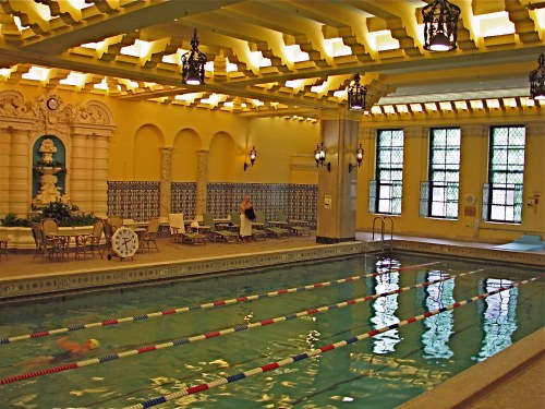 An invite to attend a wedding during late February brought me back for a weekend and a chance to see the old and the new Chicago. I had written about the Intercontinental Hotel in my Green Hotel & Resort story, and they offered me a very attractive journalist rate and upgraded me to a suite. The hotel has 792 rooms and 175 different room configurations in the Historic Tower where I stayed. In 1929 Walter W. Ahlschlager, the same architect who designed the Beacon Theater a few blocks from my Upper West Side place, designed the Medinah Athletic Club. The 23rd floor had a miniature golf course, shooting range, running track, gym, boxing arena and bowling alley. What still remains is the indoor swimming pool and the stands built for watching the action in the pool.