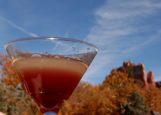 The glass gallery of Kuivato, http://www.kuivato.com, is located in the Tlaquepaque Arts and Crafts village, which is adjacent to Los Abrigados. The village is filled with shops and eateries. Of course I had to have a farewell martini at the Oak Creek Brewery and Grill to celebrate the splendor of Sedona’s red rock outcroppings, and toast my purchase of two special art martini glasses reserved for upcoming holiday gifts. Sedona can be magical anytime of year, but even more so during holiday times.