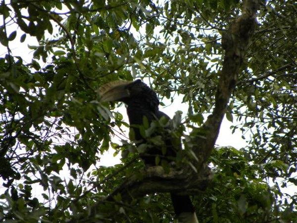 As we ate I spotted a yellow hornbill bird, which I had learned about in a TV documentary and was fascinated to be able to see it in person. I think it was a male, and as we watched this weird bird, he either brought food to place into the mouth of his mate who was sitting in the nest closed up within the hole in the tree, or he was cleaning the nest from the droppings of babies. We could not tell which, but he repeated the motions with his mouth the entire time we watched and photographed him along with some other tourists nearby. He was so intent on his job he never seemed to notice that he was the fascinating subject of many huge cameras pointing at him!