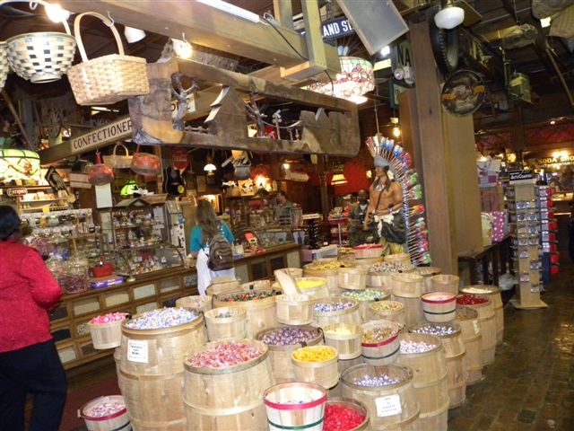 But this train museum is just one of the great places to visiti at this stop! You’ll find a village of gift and art shops and even a church. But the place you MUST not miss is the Brooks Shaw and Sons Old Country Store, one of the most unique and fascinating finds of all our travels! Here we just planned to eat lunch, but we stayed for hours at this step into a nostalgic past. First, the food is the BEST Southern buffet we have ever enjoyed, all made from scratch with freshest vegetables, meats, and fruits. The Hobo Stew is a delicious soup of many fresh vegetables and chicken, simmered to perfection. The fried green tomatoes and corn pone (looks like pancakes) are truly Southern country fare. The pulled pork and fried chicken and fish are perfect! And the homemade banana pudding and fruit cobblers are incredible! The vast array of Southern cooked vegetables are each deliciously prepared with excellent seasoning and care. We have NEVER had a better country style meal!
