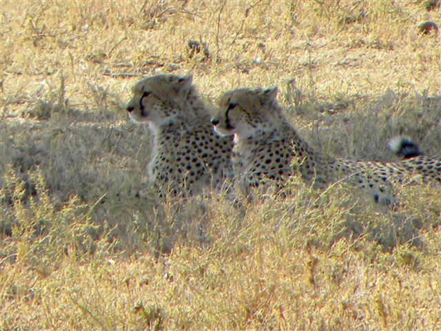 One early morning we were privileged to happen upon five cheetahs surrounding a herd of gazelles and carefully stalking and singling out one weak one to kill and devour. It was a gruesome site to witness the actual kill, but this is the survival of the fittest, the law of Nature. However, it was fascinating to watch the cheetahs work together because alone, a cheetah cannot outrun a gazelle. Our guide explained that the meat-eater animals in the wild never kill except to eat, and when they are satisfied they go long periods before another kill. They only kill the weakest or oldest animals, which keeps the herd strong. We saw one dead fawn, which had been hit by a car, and the mother was standing by it in obvious mourning. Manase explained she will stay there about 24 hours, until the vultures arrive. Other predators do not eat animals they have not killed themselves; they somehow know it could make them sick. Thus, the carrion-eaters play an important role.