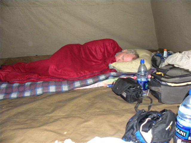 We could have chosen to balloon ride over the vast Serengeti National Park of Tanzania and taken it easy, just floating along, but how much we would have missed! As Abdul Meena, owner of Abrojaley Africa Ajabu Travel Company, who planned our whole trip for us, said, “You write Real Travel Adventures, so I’m giving you a Real Travel Adventure. If you stayed in the beautiful hotel lodges or fixed permanent tentcamp sites you would miss so much, because these are outside the parks and you would spend half of each day just traveling in and out to find the best viewing areas to see the animals.” And he was SO RIGHT! We had the most wonderful adventure, and here is how we slept: in the middle of the National Parks in public campgrounds that had adequate restrooms (some even better than primitive camping in the United States.) Although our experience of sleeping in tents prior to this were quite limited, we were so tired and happy by the time we hit our sleeping bags in early evening we went sound asleep, not even afraid of the animals that roamed freely through the campgrounds in the darkness.