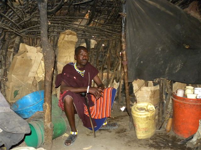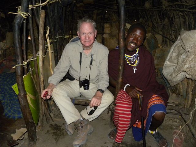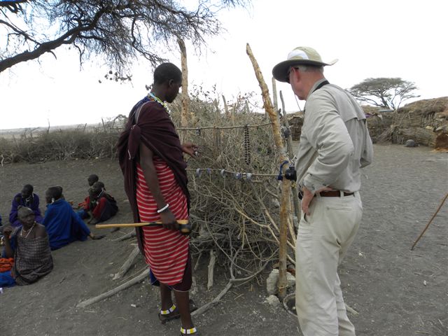 The man told us all about Maasai ways. The home was totally dark, no electricity, no water except what they buy for $600 a month for the village from a delivery truck, only for drinking; they take no baths. But the people were very clean and have no bad odors at all! They clean underarms and privates with a plant that foams like soap when rubbed.
