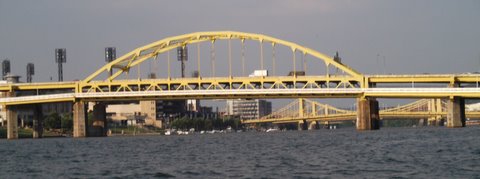 The color gold in Pittsburgh , meanwhile, is also represented in the three gold-painted bridges that span the Allegheny River, the only three identical sister bridges of their kind anywhere in America. They are named for some of Pittsburgh’s luminaries: the Clemente Bridge for Pirates baseball hero, Roberto Clemente, the Rachel Carson Bridge for the famed environmentalist, and the Warhol Bridge for contemporary artist, Andy Warhol.