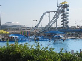 The park is built with lots of shade, and all over the park you could ask anywhere for free ice water. The large misting fans placed near each of the rides helped a lot while we were in lines. If you have the money to really splurge, Flash Pass tickets are available to avoid the lines. Be prepared ahead of time that there are many concessions and midway games that your children will beg to pay extra to do. A good policy would be to give them a set amount before arriving and make sure they understand that when it is spent that is all. I did not like that aspect of Six Flags. Our favorite ride on this hot day was Aquaman Spashdown, as we did get drenched!