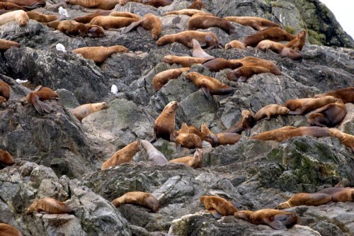 But whales were not the sole attraction on this expedition. Bald eagles in Alaska are as plentiful as pigeons in New York, but that doesn’t diminish their majesty in flight. Stellar sea lions, the largest of the seal populace, can be seen lounging on the rocks along the shoreline, bleating and bellowing so loud as to drown out the boat’s very noisy motor. Then attention diverted to harbor seals, several dozen of which were swimming along the shore, their heads bobbing in the water like little brown, slippery Jacks in the Box. They, however, were a lot less enamored of the whales than we were as the orcas are their most common predator. And so story and nature come full-circle: both the harbor seals and I were watching the whales closely, but for very different reasons.