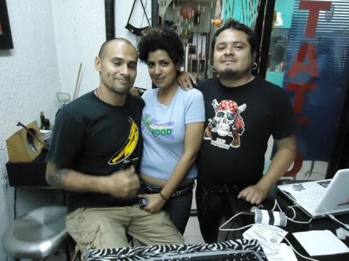 Tuna has been a tatuador for 12 years while Angy began doing tattoos only a year ago, when she began living with Tuna. Together they opened up a shop in the nation’s capital. Before then Tuna had been doing tattoos for customers at other studios. He was introduced to the trade from having had his body tattooed. Angy learned the skill from Tuna.