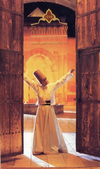 In this region, known as the Konya Basin, we learned that in the 13th Century the Seljuk Turks heard of Rumi, an Arab mystic who started the philosophy of Sufism, which stood against the abuse of Moslem men. He was invited to live in this region where he was accepted, and here he taught and wrote poetry about the mystical love of Allah (God), and the respect and balance of all nature as well as the need for all to be kind to all people. A young boy, Shams, from Baghdad heard about Rumi and came to Konya to meet him and they became very close. Shams wanted to feel the direct love of God so he began the practice of whirling in order to have an out-of-body experience of meeting God.