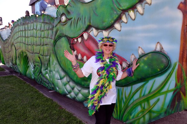 I was standing on a city float, next to its mascot, Gumbeaux Gator, riding at the Sunday Children’s Parade – one of the many celebratory happenings, like: Pets Parade; Hot Rods, Motorcycles, and Classics Parade; Zydeco Music Fest, and various krewes’ costume presentations and balls. By the time I was done with my bag of beads, my right arm was so sore,and I could hardly hold my bottle of locally-brewed Abita beer, but that was a great feeling! Then on Fat Tuesday, I had a chance to re-live the experience from the other side, when I took my place in a cheering crowd on a sidewalk, for the grandiose Krewe of Krewes’ Parade. Standing there in a plastic rain poncho, I was stretching my hand and jumping up and down trying to catch the beads flying out from the festively decorated floats.