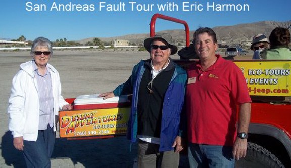 For a great adventure, don’t miss a Desert Adventures bright red jeep ride leading to short hikes into mountainsides that have been tortured and twisted by wind and erosion, as well as tremendous earth changes over millennia created by the awe-inspiring San Andreas Fault. Our driver and guide, Naturalist Eric Harmon, was a “hoot,” albeit a highly knowledgeable and informative “hoot,” who delighted us with facts on geology, history, desert plants and trees, huge, desert solar collectors, desert wildlife, and so much more – a truly grand experience.