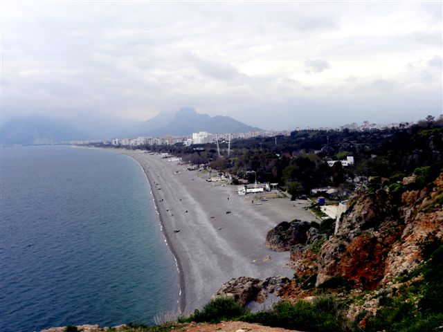 We stopped for lunch at Seydisehir, where the largest sulphur mine and production of aluminum and a large hydroelectricity plant are located. Then we drove over the perfectly beautiful snow covered Taurus Moutains, 6,000 feet high. With the beautiful evergreens it reminded us of the Colorado ski areas. On the lower slopes were olive groves up to 800 years old grow, as do orange, lemon and pomegranate orchards. These mountains appear even taller than they are because they go straight down to Turkey’s Turquoise Mediterranean Coast where it never snows and summers are hot and dry but good for farming strawberries and tomatoes. This is a popular summer resort area, but many accommodations don’t have air conditioning and are built with windows strategically placed to capture the constant breezes.