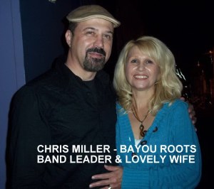 Our favorite was Chris Miller and his Bayou Roots Cajun Band. Wow! What a beat, and what a guy Chris is – warm, and friendly and so much in love with the music he provides — as well as with his beautiful, blonde bride of over 20 years. He even dances a few steps with her onstage — wrapping his arms around her and playing his accordion behind her back — as the band plays on. Talk about fun!