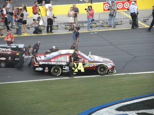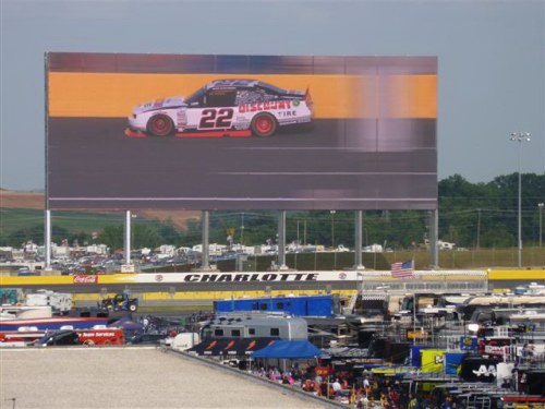 The amazing new biggest screen in the world added this year to the track makes the race even more exciting for fans. It stands beyond the track so that we could see every detail “up close and personal” as the cars zoomed around the track. The close-up shots had a very tiny delay from the actual, so it did not detract but enhanced your watching the race. Our eyes did not stray to the screen, as at Dallas Cowboy Stadium, but instead, we could glance at the huge screen when we missed a detail or needed to see the point of interest more closely than any seat position could offer. It made the race very much more exciting. This is a wonderful addition to the Charlotte Motor Speedway and will offer many other fun things to see and do throughout the year. There are plans for drive-in movies and for playing video games on the huge screen!