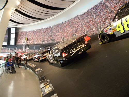 For years we have been NASCAR racing fans, usually via TV. The first race we attended in person was at the Texas Motor Speedway near where we live. But this year we wanted to go to the hometown of NASCAR racing in North Carolina, where we spent a delightful weekend in Cabarrus County, just outside of Charlotte, NC, and the location of the Charlotte Motor Speedway, a 1.5 mile oval racetrack with seating for over 100.000 spectators. The whole area is about racing and we had so much fun visiting the various places, in addition to watching three racing events: the Windstream Pole Night on Thursday night, the Nationwide Race on Saturday afternoon, and the big CocaCola 600 NASCAR Sprint Cup event on Sunday night. These events occur here every Memorial Day week-end And the fans are now gearing up for the exciting October 12 – 15 events: World of Outlaws Late Model Series Showdown, Bojangles Pole Night, Dollar General 300 NASCAR Nationwide Series, and Bank of America 500 NASCAR Sprint Cup Series. There is some kind of racing event in and around this area almost any week you choose to come.