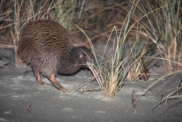 Fifteen flashlights shone downward as we gingerly picked our way through the bush. At the appropriate signal, we extinguished our lights, and 15 expectant adults gathered noiselessly behind our boot-and-camouflage-attired leader. As his sole light hopped and skipped across the dark, remote seaweed-strewn beach, suddenly we saw her –- the elusive New Zealand kiwi. On orders to stay close, we waddled in muted tandem behind guide Philip Smith as he inched us to within 20 feet. Trying not to intrude upon her late-night supper, we were star-struck by this brown dumpling of a bird, head bobbing up and down, its long beak darting in and out of the sand single-mindedly nibbling on spiders, berries and crustaceans.