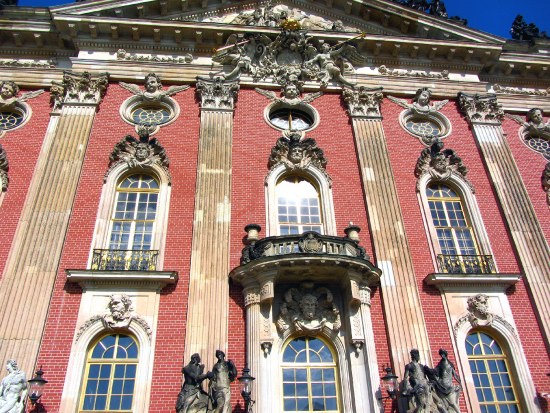 His enormous New Palace, with 400 exterior statues and 20 thousand precious and semi-precious stones in the interior décor, was built to commemorate his victory in the Seven Years’ War (1756-1763), which established Prussia as a powerful European state. For this monument to himself Frederick chose opulent baroque style, which was going out of fashion with the advance of neoclassicism but still symbolized power and inspired awe.