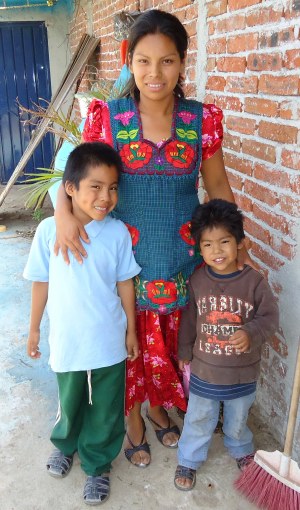 The bright, attractive and fully trilingual (English, Spanish and Zapoteco – locally referred to as dialecto) Oaxacan, resides with children Juan age 6 and Daniel age 3 and mother-in-law Mariana in a one bedroom brick and cement house tucked away at the end of a spacious dirt-floored courtyard, part of an extended family compound. Husband Benito owns this particular portion of the homestead. He plans to also leave California, in about three months, to reunite with the rest of his family.