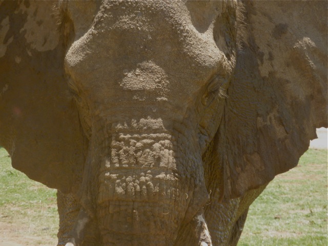 They and their incredible guides have named the many different families for mountains, artists, royals and rivers, and know almost all the members of each family by name. One morning we set out with a picnic lunch at the river. When we arrived “The Royal Family” awaited us. There were at least thirty elephants, bulls, females, and young elephants suckling their mothers. They recognized the car and the guides by smell, and were not the least bit threatened by our appearance. We got out of the car, usually a big no-no when around any wild elephants, and had our lunch. As we sat there with a cool breeze in our faces, three other families passed by and went into the river to drink. On our way out of the area, one big bull came right up to my side of the car, and raised his trunk to sniff the inhabitants. His trunk came no more than six inches from my face! To say this experience was thrilling would be a gross understatement.