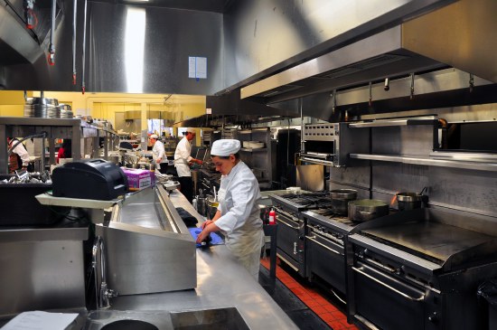 Our tour of the Ahwahnee kitchen presented a ginormous operation working like a well-oiled mechanism and involving boxes of pomegranates, sticks of butter, vats of muffin batter, and trays of chopped clams and mussels. The five-course gala dinner paired with wines and served by candlelight was yet to come.