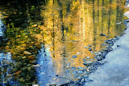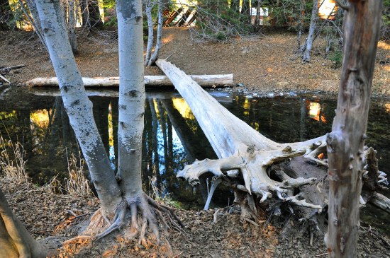 Eager to take advantage of at least some of the fun activities offered by Tenaya Lodge, we signed up for a one-hour Guided Nature Hike, which took us on a loop trail through the enchanted forest with hugging trees, icy Big Creek coming from Merced River, and beaver dams. Fresh mountain air, clear blue sky, and cushy forest floor provided a perfect classroom where we’ve learned that sugar pines grow to 300 feet, hold five needles in a cluster for five letters of the word s-u-g-a-r, and develop huge “widow maker” cones loved by squirrels for their sugary pine nuts. We also learned that black ravens use 19 different calls, mate for life, and have a special call for their mates (calling them by name?). We stopped to look at a tree trunk turned into an ant hotel by carpenter ants. Then we stopped to touch a carpet of bear clover. Bears like to roll in these plants to cover their hides with the natural oil which protects them from tics and lice. Then we marveled at a beaver’s miscalculation – the tree intended for a dam fell not across the stream, but in a different direction…