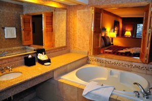 I also thoroughly enjoyed my eggplant napoleon with layers of grilled tomato, red peppers, and goat cheese, and my husband’s Angus filet mignon with colored fingerling potatoes and cabernet sauce. When it seemed that we wouldn’t be able to eat another bite for a week, we retired to our luxurious suite for a good night sleep.