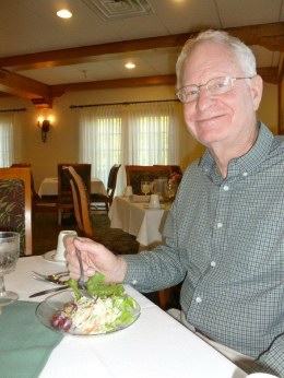 People come to The Oaks for many different reasons, and most of the ones we talked to have been here many times, saying they always feel like they are returning to a family of friends. Since meals are family style and classes are varied, you simply introduce yourself to many different people in a day and easily make new friends in this relaxed atmosphere where everyone is learning and practicing together. The largest percentage of The Oaks clients are professional women. Others are all ages, shapes, sizes, married, widowed, and single. Not as many men stay here, but they are missing some great opportunities, as Bill will testify. Anyone can learn how to live healthier and enjoy the classes and delicious meals here, feeling pampered and welcome 24/7. Fathers’ Day week is the time of year to introduce your man to The Oaks, since it is popular then for men, who often follow their retreat here with an extended golf, fishing, and tennis holiday in or near Ojai.