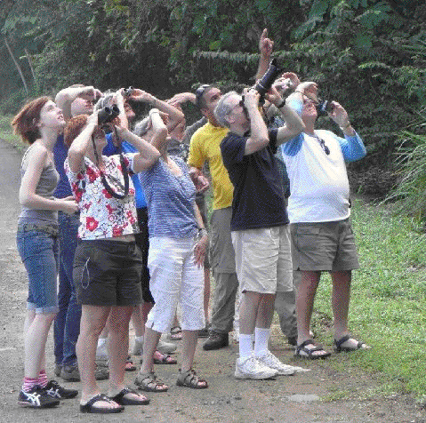A great deal of time is spent on the tour with necks craned treeward seeking out the rare Replendant Quetzel, a couple of toucans, a 2- or 3-toed sloth perhaps, or a group of howler monkeys swinging among the branches.