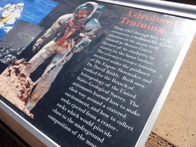 We had passed Exit 233 on Interstate 40 west many times and negated the idea of turning off to see Meteor Crater… Perhaps our big RV can’t make it up the road; Perhaps there is nowhere to park it…It’s probably just a big hole! But we were certainly mistaken in all these aspects! We asked the personable owner, John Kelley, at the Holbrook KOA if the road to Meteor Crater is safe for rigs towing a car and his answer was a resounding YES…you must go there! So we did, and we are so glad. The road is excellent and there is plenty of parking for every kind of vehicle.
