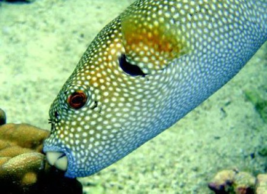 In the photo above a puffer swam into the coral, bit and retreated to chew. By timing the advance and retreat I was able to look through the viewfinder, set the zoom and catch the fish with his lips retracted, and his teeth exposed in the act of biting making a much more interesting photo.