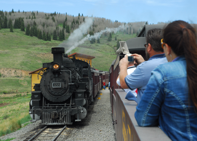 Offered from May to October, the Cumbres & Toltec Scenic Railroad offers daily rides with several classes of travel. You may choose the top end adults only Parlor Car with special food and beverage amenities located at the end of the train, to the Tourist Car, where you can ride in comfort with a table and chair at your command, the open observation car where all classes mingle in the open air with fresh scents of pine and the occasional coal cinder, or the coach class closest to the engine where kids and families mingle.