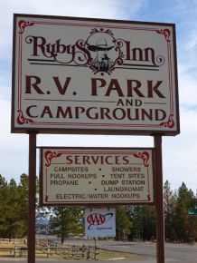 We were there in mid-April and entered at the beginning of a snow storm. It snowed six inches overnight and was a beautiful, white fairyland the next day, frosting Bryce Canyon spires and hoodoos with white icing. A day later we had bright sun and blue skies and the snow melted by noon, creating a lovely springtime everywhere! What a treat! Make your reservations for this perfect RV Park early because it is a very popular place. Ruby’s also has gasoline and propane on site and a 24 hours, full- service RV and car repair center just across the street.