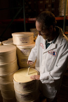 The farm is a modest operation run by George and Linda Miller, and it sits on rolling hills. Their bright red barn stands out against a lush green landscape and the entire family pitches in to help with the cheese making. They send much of their milk to Cabot Creamery for processing, but they also keep a portion for themselves and produce two types of award winning cheeses. Jericho Jack is an aged, raw milk cheese with a firm body. Colby Jack is raw milk cheddar made in the stirred curd style, and I intend to become an expert on both of them.