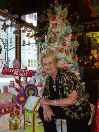 Paris, Texas, Downtown Association chose Candyland Express for the theme of the 2012 store decorations for the holiday season, but the owners of Spangler’s, an upscale gift shop, did not think the seemingly kid or cartoonish approach to the decor would was a good fit for their store and merchandise. But Gail Chiles, the store manager, came brilliantly to the rescue with her amazing creative mind and talents. She began working with the help of her 16 year old granddaughter, Jessie, in June to make by hand the glorious Candyland Express which can be seen at Spangler’s through the month of December.
