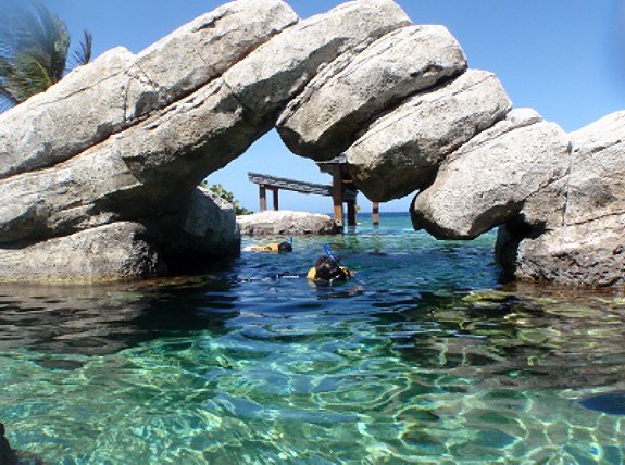 We swam and snorkeled there with the some of the clearest views to be found on the north side of the island. Again, staffers were always on hand to bring towels, food and drink. We were there on a particularly hot day and enjoyed the “cool tubs” en route to the waterfront. Vendors were aplenty outside the resort’s roped off area and yet kept at bay for most of the day.