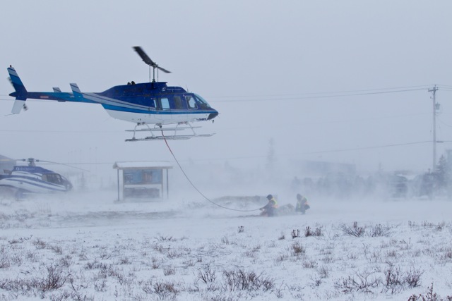 The polar bears hibernate most of the summer and move toward the bay around mid October waiting for the bay to freeze. The town of Churchill in northern Manitoba, braces for the presence of the bears as the town stands right on the shore of the Hudson Bay. The town’s polar police are activated and patrol the town’s periphery nightly. If a bear gets near the town, a warning blast is shot from a shotgun. This will often be enough. If the bear passes through the town’s perimeter, it is shot with a tranquilizer gun and taken to the polar “jail.” This jail can hold up to thirty bears. When a group is organized, the bears are again tranquilized, put on a truck, or else air lifted to an area hundreds of miles north. Under the watchful eye of a veterinarian, the bears are monitored until they awaken in their new homes.