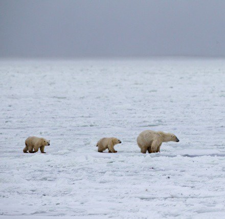 The bears that do not come through Churchill, eventually make it to the Hudson Bay. Once the bay is frozen, the bears grab on to a piece of ice and float out to deeper water wmye they hunt for seals. This feeding frenzy continues until spring.