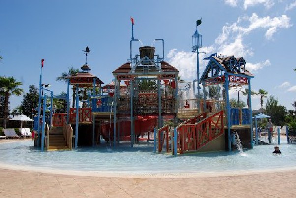 Meanwhile, back at the Reunion Waterpark, with its multiple pools, and a section of ascending inter-connected rope tunnels leading to two winding slides to keep kids of all ages entertained. And if the big bucket on top fills to the point of overflowing, dumping water everywhere — well then, all the better. There are also daily activities such as balloon toss, parachute games and arts and crafts, some free, some costing a minimal fee.