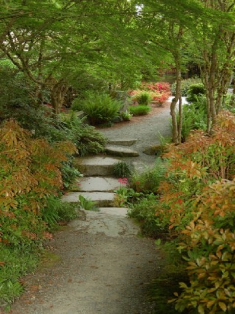 Since we were enjoying the nature and feel of the area, we ventured to our first stop at the 53-acre Bellevue Botanical Garden. We had an appointment with Nancy, the Garden’s manager, but I fear we were late. We got to the Garden on time, but as we were walking up the groomed paths and through the meticulous Japanese garden, we kept stopping with wide eyes and expressions of “wow, look at that!” on our faces. Colorful bushes, blooming flowers, a tinkling brook gently flowing over strategically placed stone steps. I was surprised at how much we were enjoying it, even before we met Nancy and got the inside scoop about the Garden.