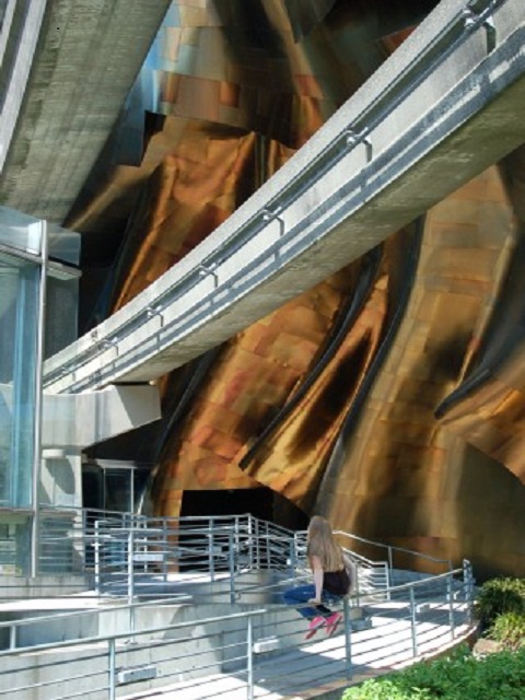 One of the CityPASS attractions that appealed to McKell and I was the EMP Museum, conveniently located right next to the Space Needle. EMP is a non-profit museum committed to exploring significant moments, events, and individuals from contemporary popular culture. For example, they honor the Seattle native Jimi Hendrix’s legacy with artifacts such as costumes, instruments, photographs and more. They displayed artwork and movie memorabilia in the Fantasy: World of Myth and Magic exhibit, and offered the chance to yank the tail of a dragon, eliciting an “oh daddy” eyeroll from McKell at the enjoyment it gave me. Even the building is cool, designed by the famous architect Frank O. Gehry.