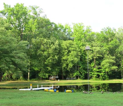 This KOA is about six miles off I-95 corridor and about an hour from either Richmond, VA, or Washington, DC, so it is very well located and very near the large Lake Anna where fishing and boating abound. The campground is in a beautiful, densely forested valley with giant hardwood trees lending their cooling shade to campers year-round. There is a very nice on-site lake for campers to enjoy paddle boats,catch-and-release fishing, and chasing the regal looking Canada geese in summer. And little explorers will want to investigate the small stream at the back of the campground, (careful of snakes!) Of course there is a clean KOA swimming pool, but smaller than many.