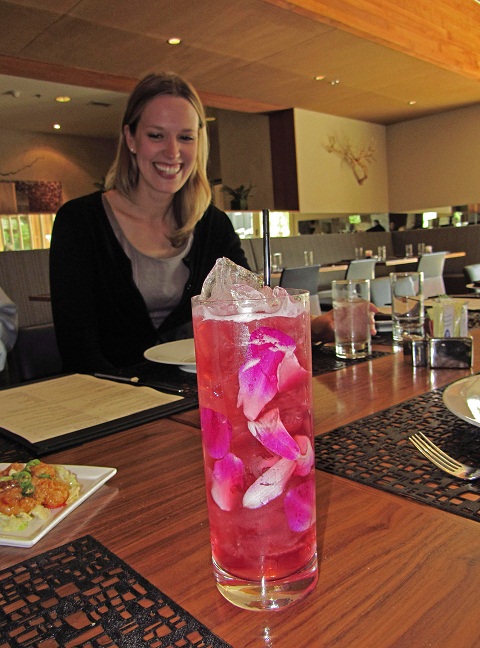 Upon check-in at the Westin, we gathered in its spacious lobby for a quick lunch at BANK Café & Bar. From a list of created in house cocktails I chose the Femme Fatale, made with my favorite St. Germain liqueur and orchid flowers. After I took a snapshot of my magenta-colored drink, I noticed that one of our group members appeared behind it, as if to impersonate its name.