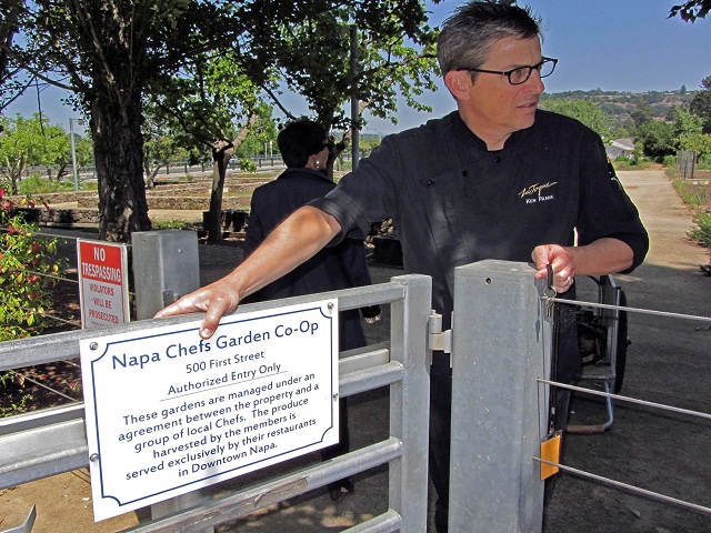 We visited Copia Gardens, located on the premises of a former cultural/culinary/wine tasting center, closed a few years ago and now expected to be repurposed into a community theater. The gardens that surround Copia building did not stay idle after its closing. The city restaurant chefs, led by Frank, made a deal with the land owner, took charge of the grounds, and started growing organic produce for their kitchens – tomatoes, cucumbers, squash, cauliflower, beans, rare kinds of peppers, like espelette, usually imported from France, exotic melons, citrus, and even ficoide glaciale – a relative of eggplant, also called Violette de Florence, and used in salads. “We grow enough cucumbers for every pickle on every burger in Napato last from June till Christmas,” said Frank. “Now we are trying for the whole year.”