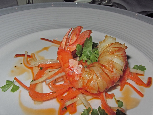 Looking at my beautiful plate with a perfectly fried potato latke topped with sour cream, I thought that my grandma used to make this for me on Saturday mornings, and that the chef’s teenage girlfriend mush have been Russian… And of course, it was much better with caviar, also a gourmet staple of Russian cuisine. The dish proved to be simply angelic paired with a glass of Veuve Clicquot.