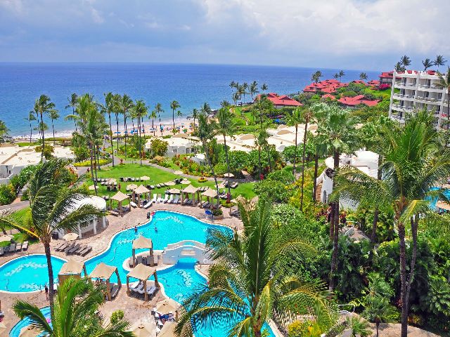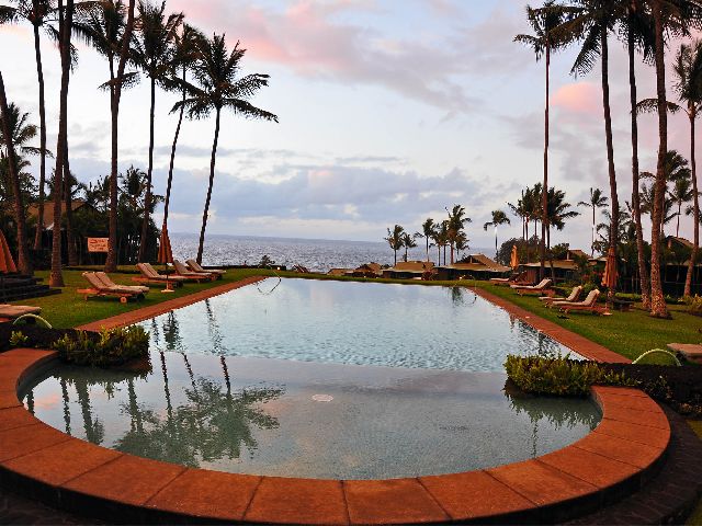 Our first room with a view was reserved at The Fairmont Kea Lani in South Maui. Designed by a Spanish architect, the white-walled hotel adorned with domes and towers, resembles the iconic “Pink Palace” – Royal Hawaiian in Waikiki. The “white palace” is surrounded by serene green lawns, palms, and blue pools. KoRestaurant, voted the Number One resort restaurant on Maui, puts a lot of emphasis on “plantation inspired cuisine” with its Spanish, Portuguese, Filipino, Japanese, Chinese, and Korean origins. Ko cocktails are made with fresh fruit juices and complement Ko specialties, like seafood Laulau steamed in ti leaves. Not far from the hotel there is a little known rocky beach at La Perouse Bay. Jewel-colored tropical fish is obviously prospering here, undisturbed by crowds of tourists. A modest monument in the shape of a truncated pyramid is dedicated to La Perouse, the famous French explorer and the first European who landed at Maui in 1735.